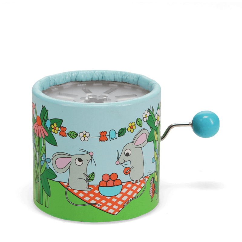 Give a traditional gift with this classic hand-cranked music box, featuring an adorable garden scene with hedgehogs, bugs and mice enjoying a picnic. Children will love turning the handle to play 'Old Macdonald Had a Farm!'