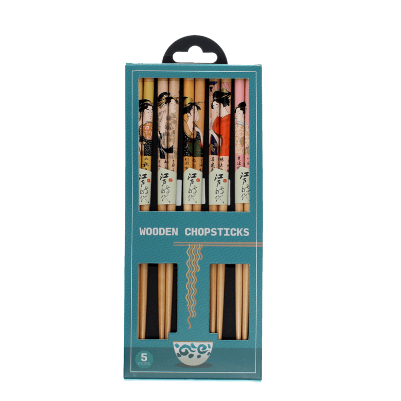 Enjoy Asian foods authentically with this wooden chopsticks set. Featuring unique geisha illustrations, traditional symbols of beauty and good fortune in Japan, these chopsticks are perfect for family dinners, gifting or learning to use chopsticks at home!